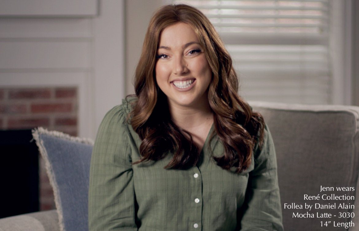 She spent years avoiding being in photos, declining invitations to be sociable, and obsessing over ways to hide the shame she was feeling. No longer the bright and bubbly person she had always been, Jenn retreated into herself. Finding Follea wigs by Daniel Alain was a pivotal moment that completely changed the way she felt about herself.