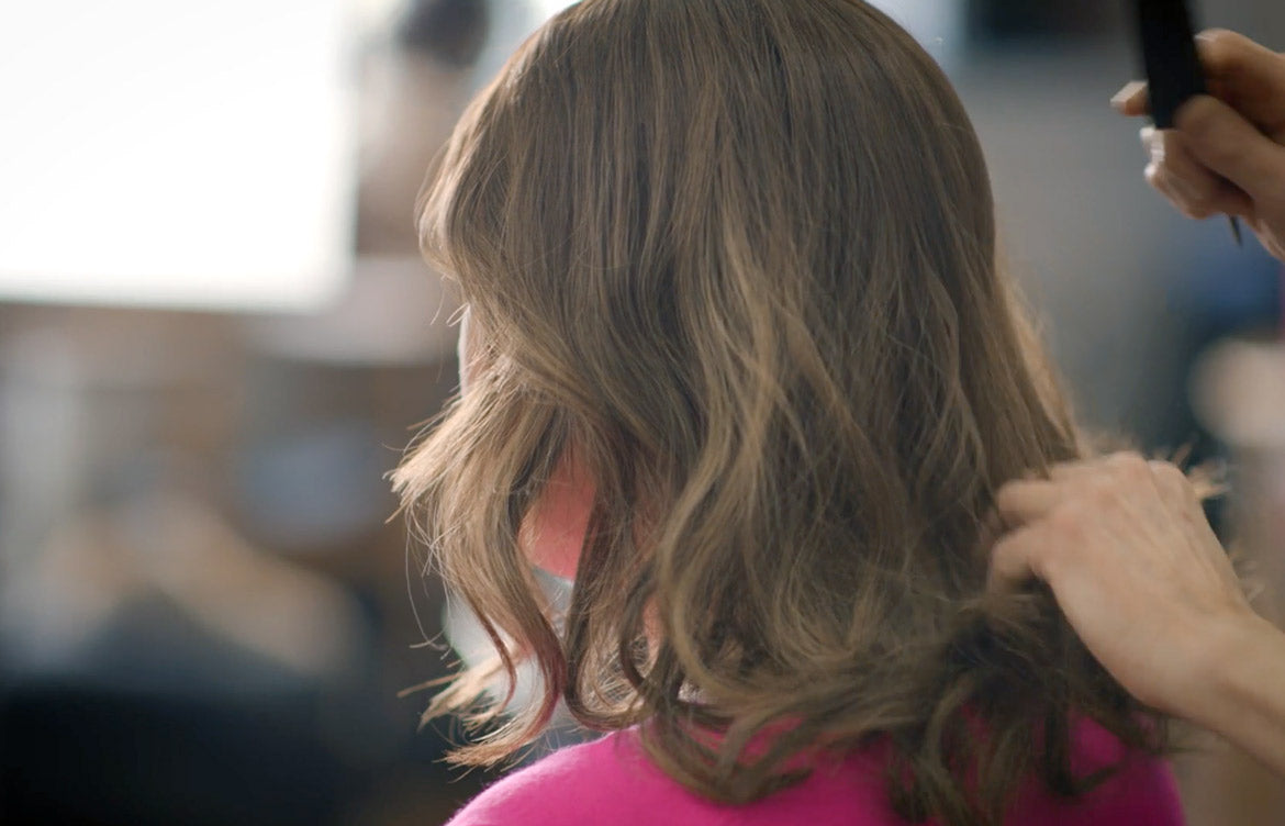 Once your hair topper is dry, it can be styled using a curling wand or a straightening iron to help it blend with your existing hair. “We always recommend using a high-heat protectant,” advises Patricia.