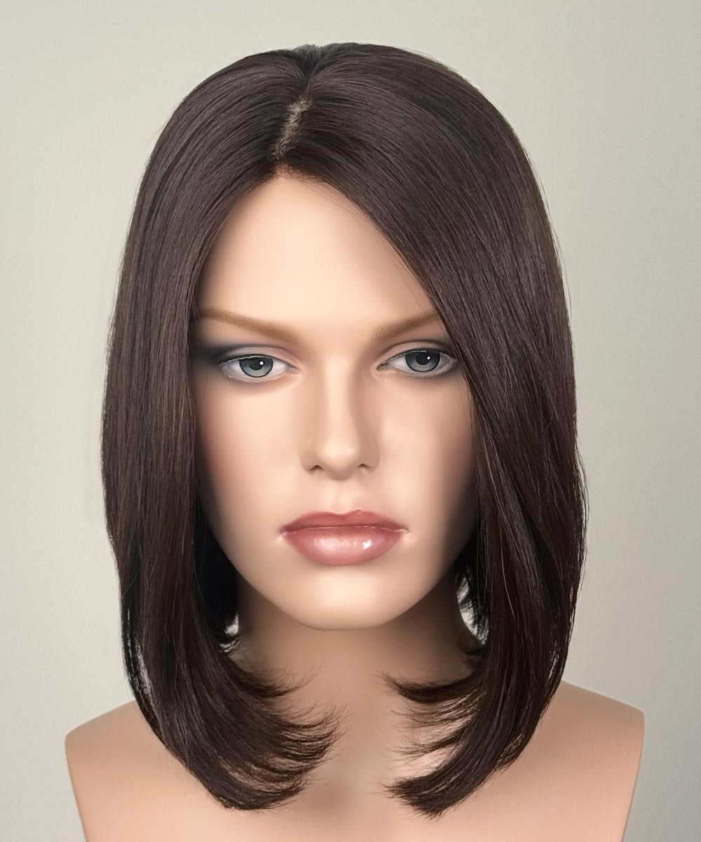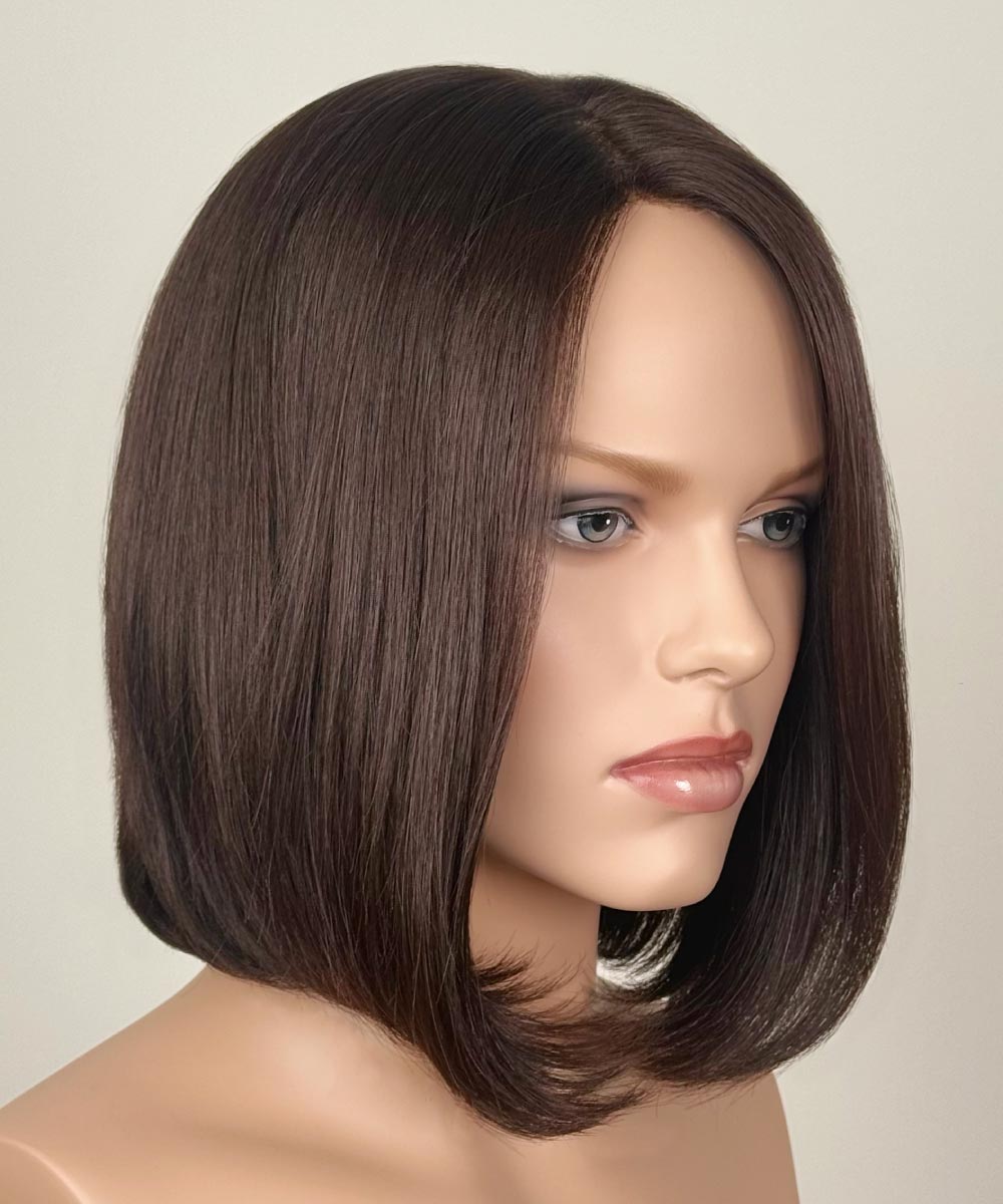 Description: Sleek bob with a slight A-line cut.  11 inches from the top to the front length.
