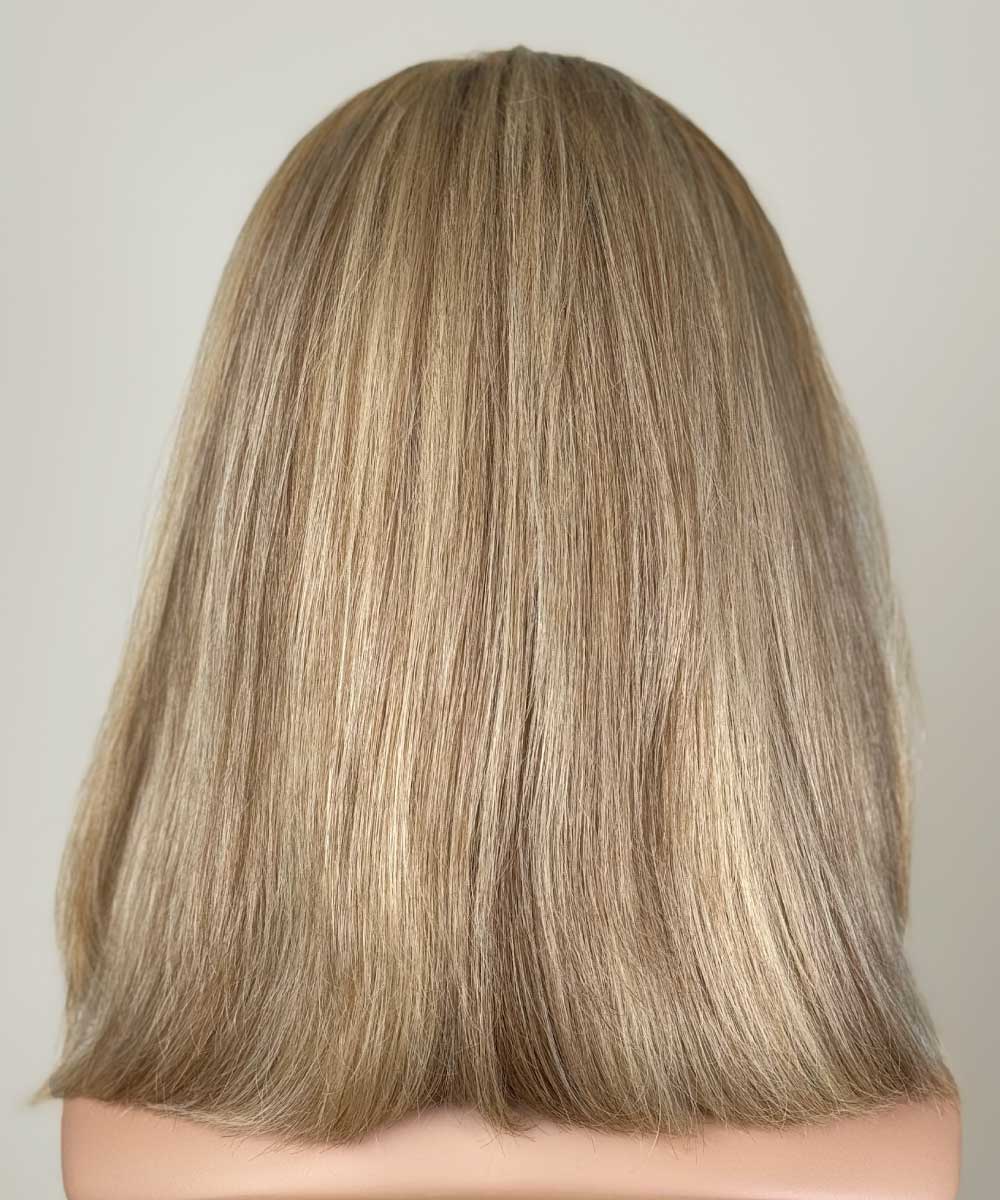 Description: Short-layered bob with long layers, 10 inches from top with 13 inches overall length.